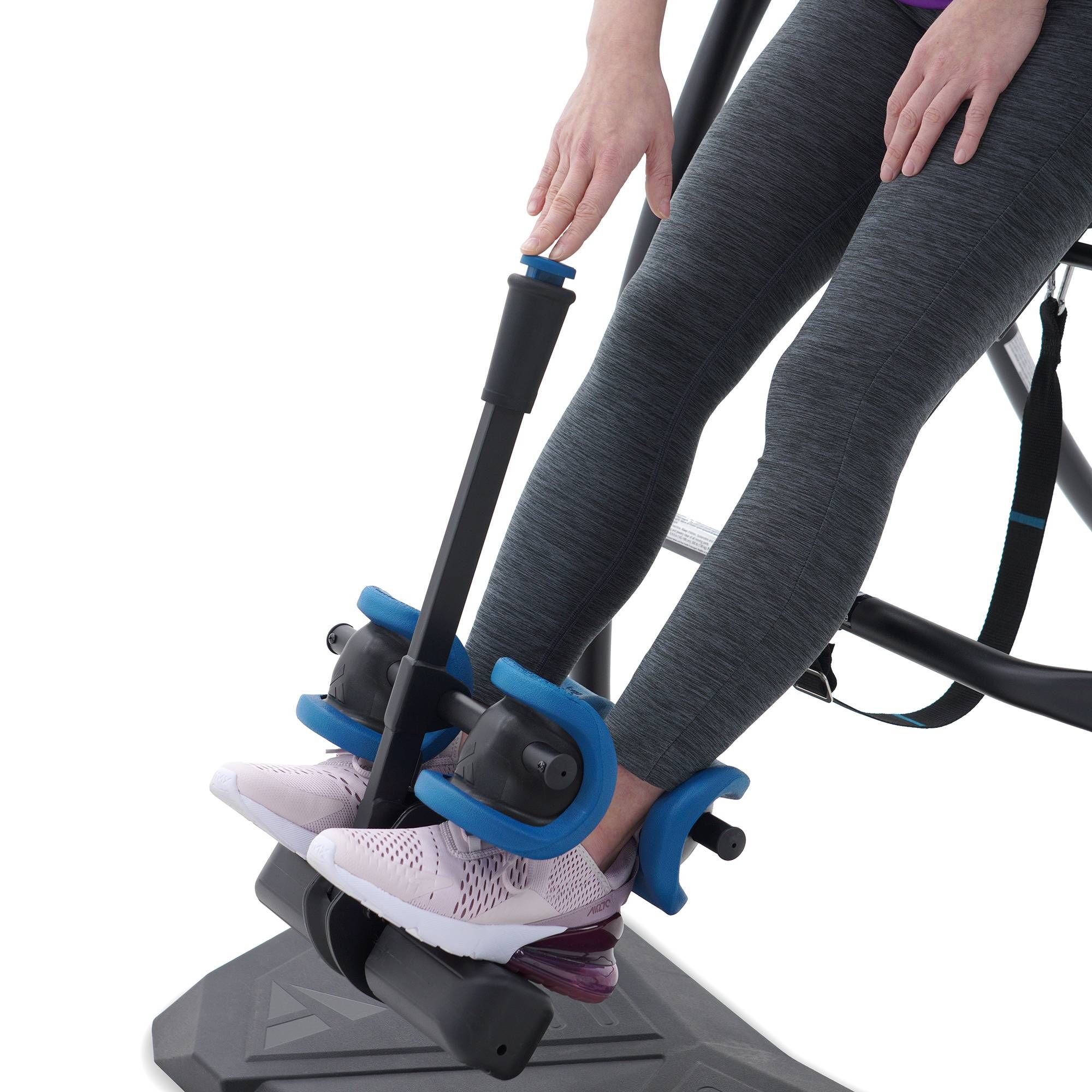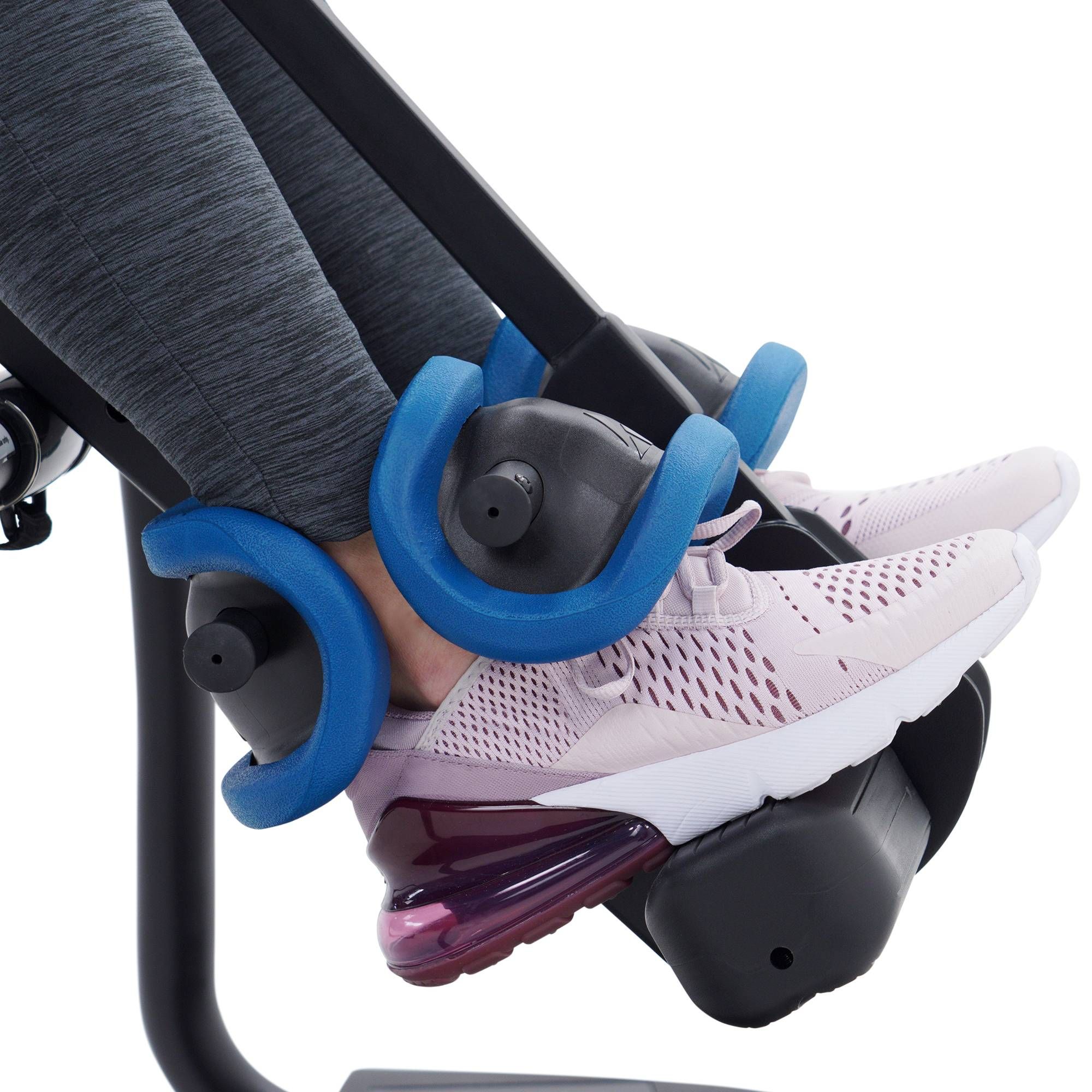Secure and comfortable ankle supports with extra‑long handle and secondary gravity‑activated lock let you invert with confidence.
